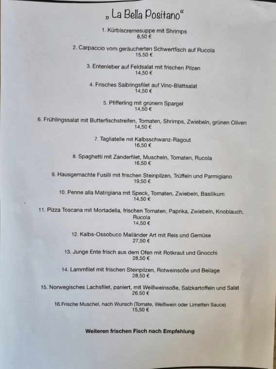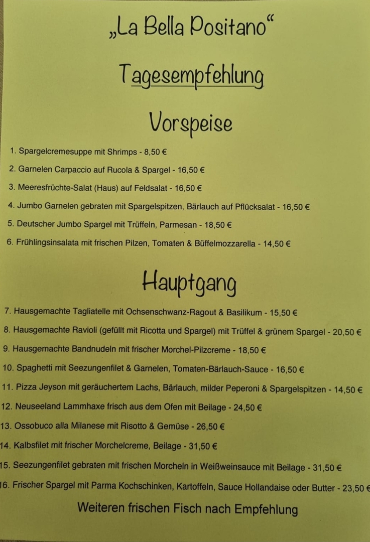 Ristorante La bella Positano Gartenstr.23 Langenselbold Telefon 06184-934924